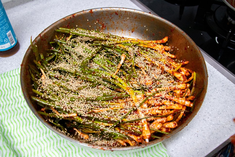 - 양념은 고르게 버무리기: 파 줄기가 서로 엉키지 않도록 조심