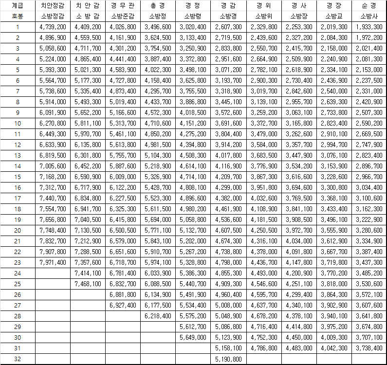 2024년 공무원 봉급표